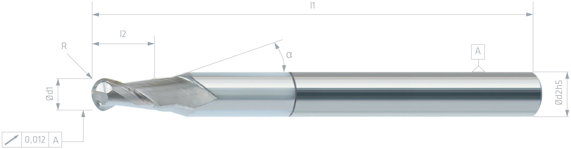 | Verkaufsbezeichnung: | VHM-Kugelfräser Ø12x24-SchaftØ12h5x150 Z2-R6-Helix30°-WESR |