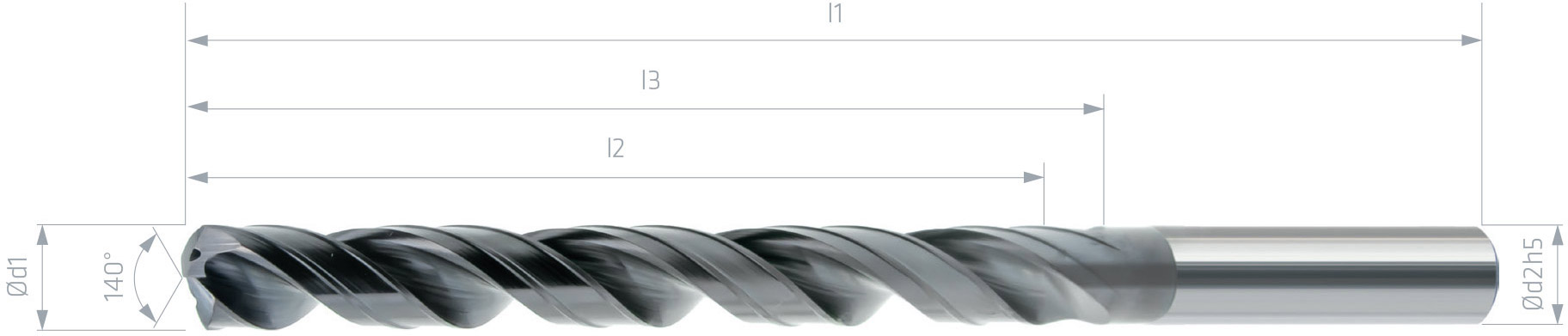 | Verkaufsbezeichnung: | VHM-KK-Bohrer Ø3.2x48-SchaftØ6h5x92-NL54 Z2-Spitze140°-Helix30°-WECX-KK-2X30° |